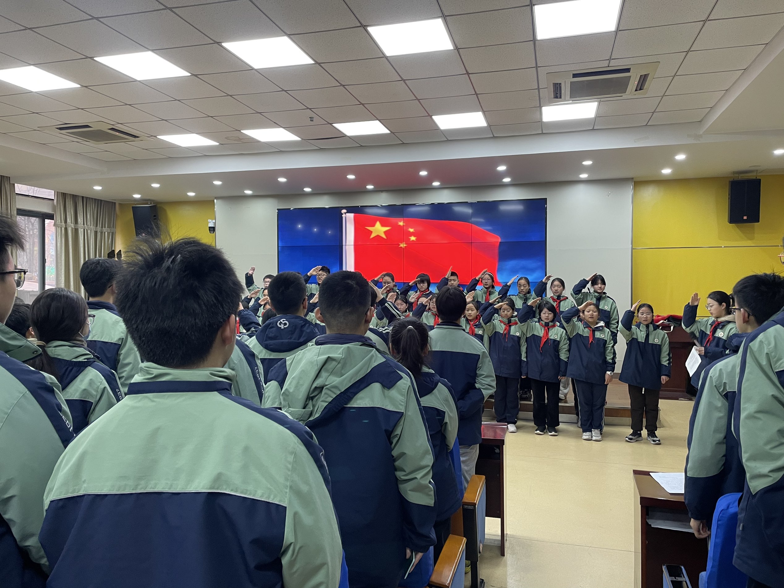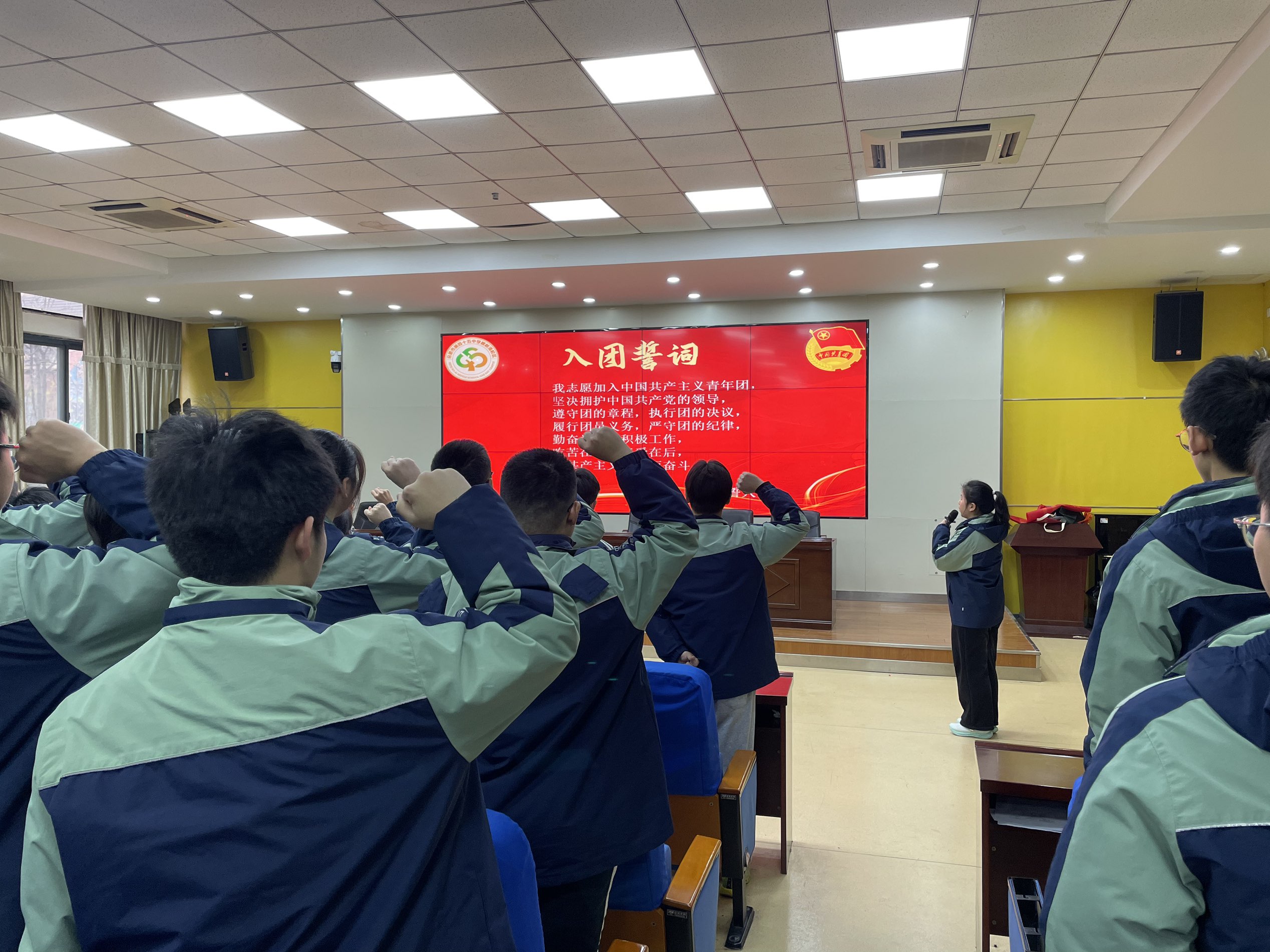随后,活动进入入团仪式环节,进一步深化 “初心传承” 的主题。全体新团员起立,齐唱团歌《光荣啊,中国共青团》!激昂的团歌旋律响起,点燃了现场每一位青少年的入团热情,也让 “共青团员” 这一身份的荣誉感与责任感在同学们心中悄然扎根。