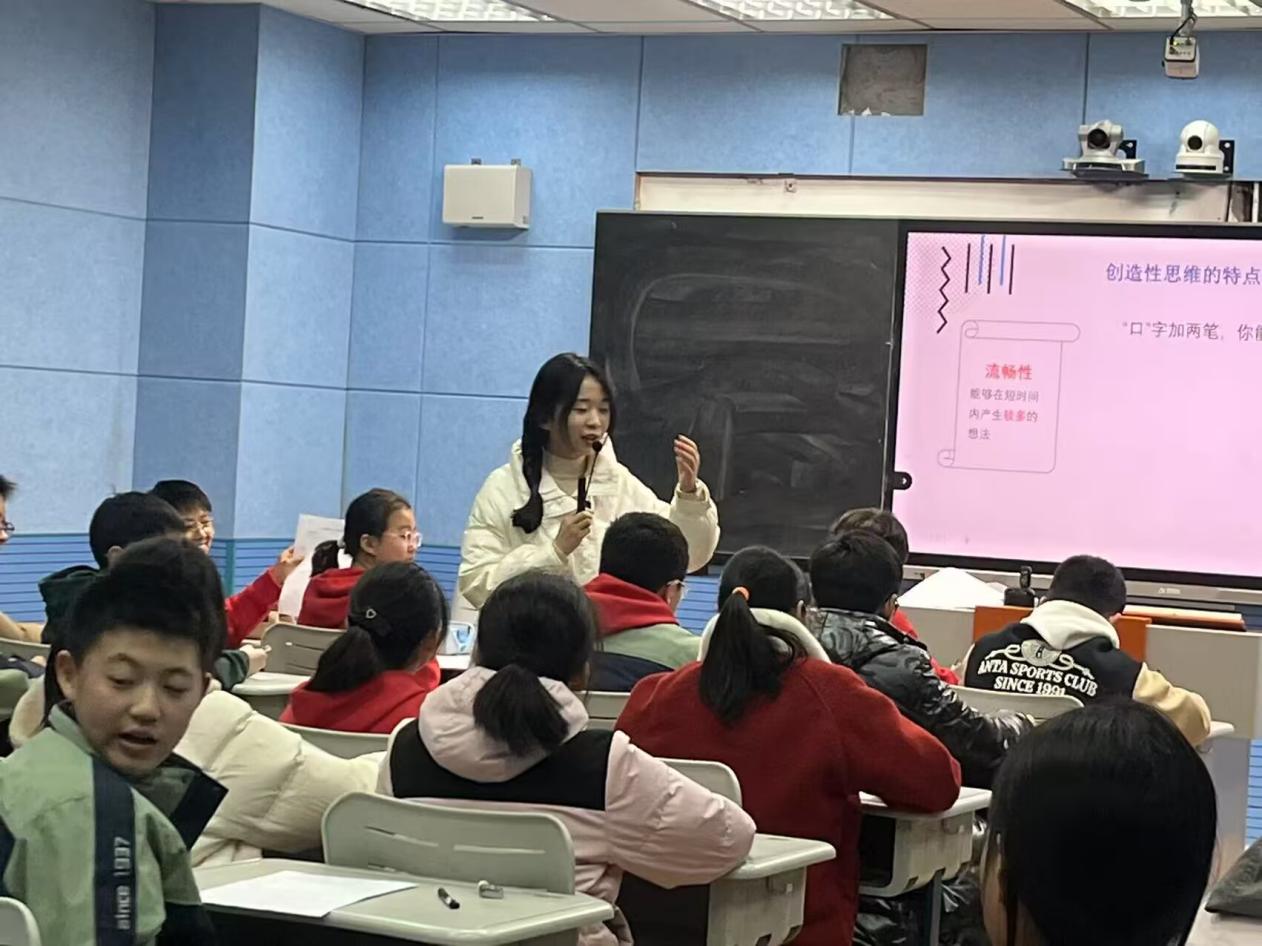 通过思维小测试,学生在欢声笑语中体验思维定势的双重影响:既帮助快速解决问题,也可能成为创新阻碍。课堂核心环节聚焦创造性思维的三大特点——流畅性、变通性、独特性。学生化身“思维魔法师”,在“组字游戏””一物多用”“圆圈变形记”等活动中大展身手。最精彩的“向和尚卖梳子”环节,同学们头脑风暴,讨论出各种营销方案,展现出超越常规的思考角度。