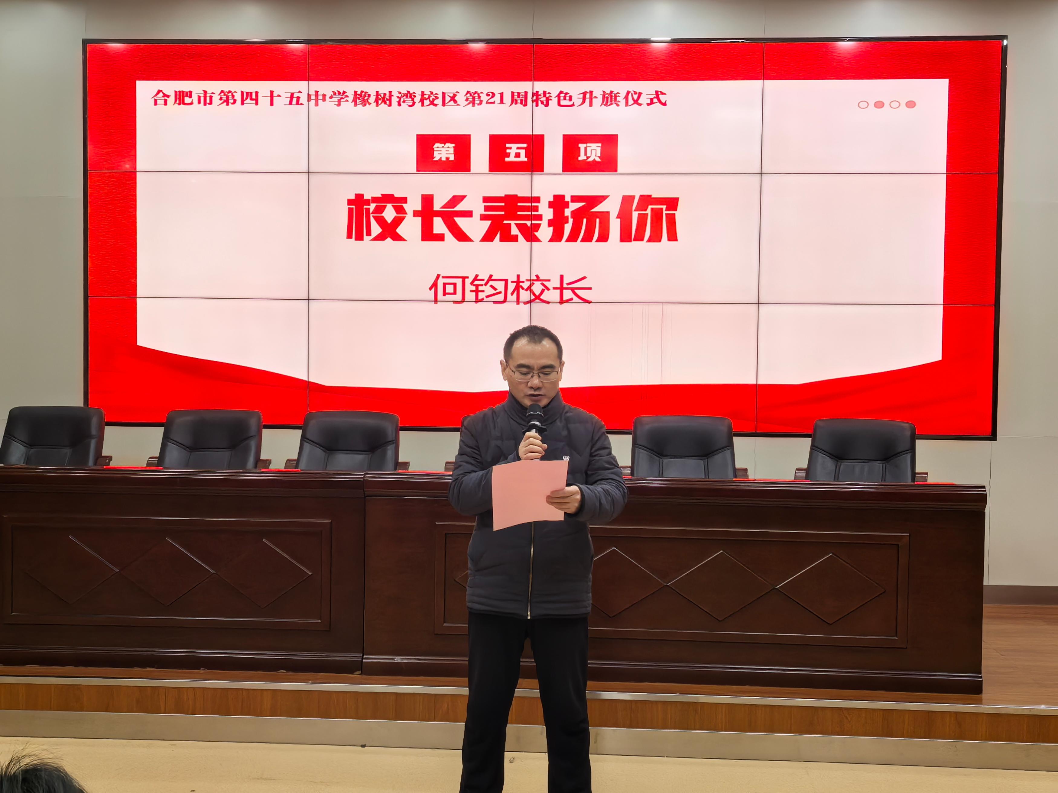 在“四好三美化,校长表扬你”环节,何钧校长对近期涌现的好人好事予以表扬。何校长表示,这些好人好事看似微小,却蕴含着正能量,既彰显了同学们的良好品德与责任担当,也是“四好三美化”的生动体现,更是筑牢校园安全防线的重要支撑。安全与德育相辅相成、密不可分,只有每一位学子都主动践行“四好”标准、积极参与“三美化”建设,才能让校园真正成为平安和谐、充满温暖的成长乐园。