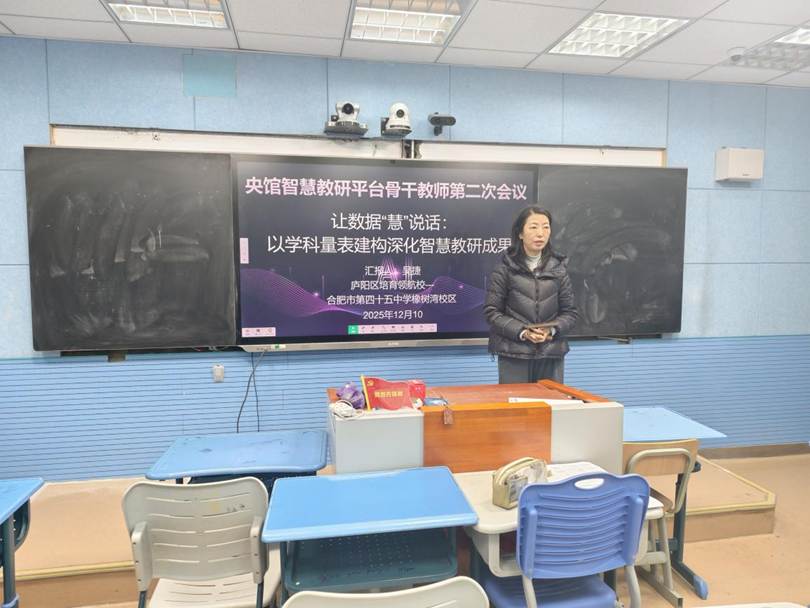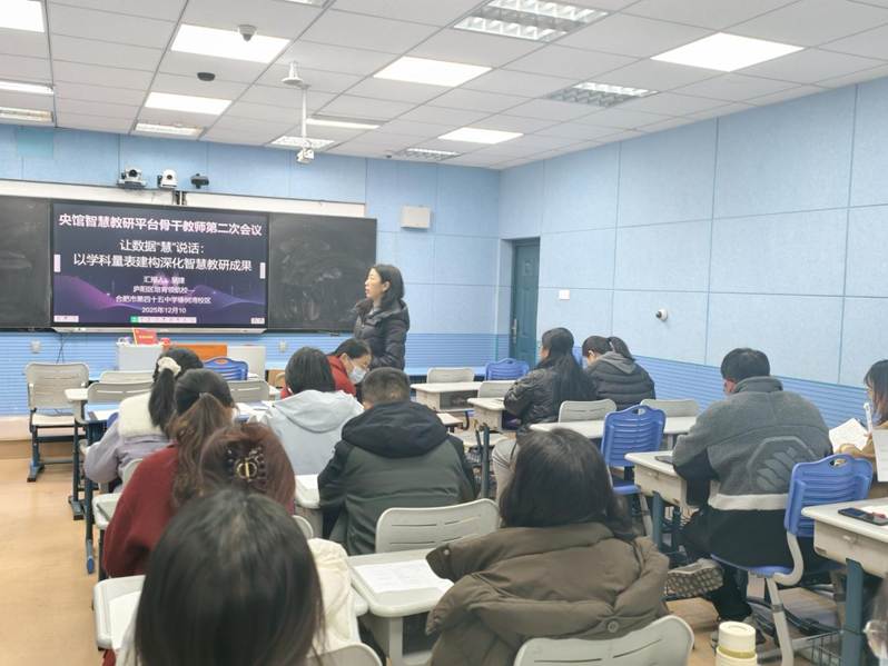 冬日暖阳沐杏坛,智慧教研启新程。12月10日下午,合肥市第四十五中学橡树湾校区召开央馆智慧教研平台骨干教师第二次专题会议,会议由教导处吴捷主任主持,全体智慧教研骨干教师齐聚一堂,共探智慧教研赋能教育教学的新路径。