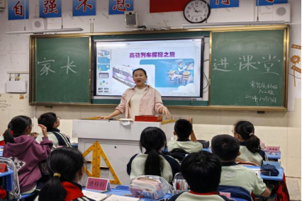 随后,徐宁宁以亲切生动的语言,从高铁列车的服务设施讲起。边提问,边展示图片,详细介绍了舒适的可调节座椅、方便的充电插座、干净整洁的卫生间,以及餐车提供的丰富美食。课堂气氛十分活跃。