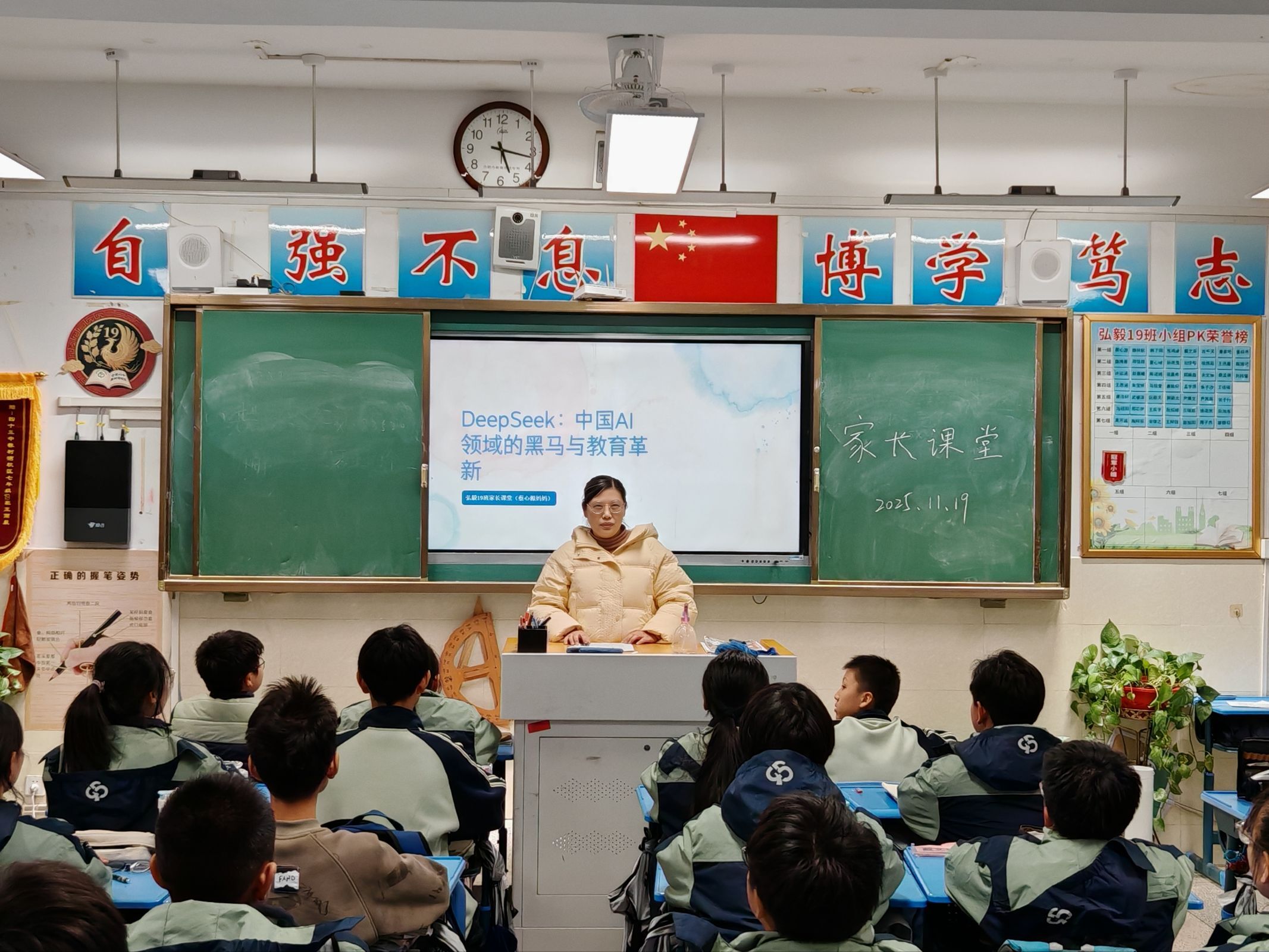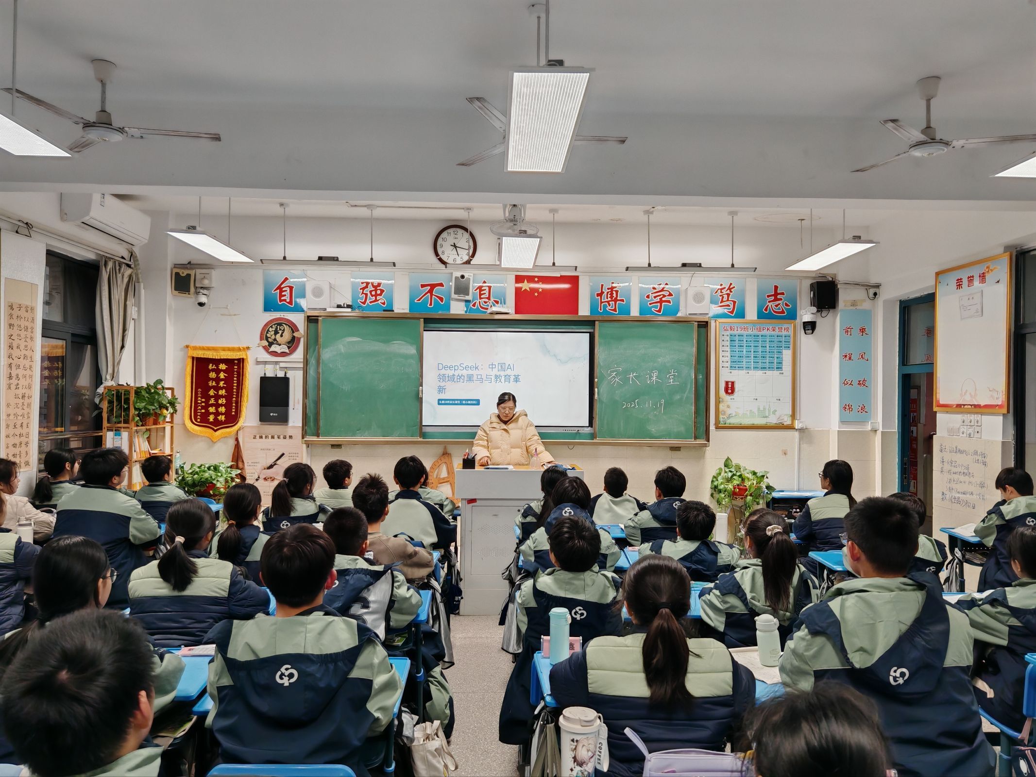为搭建家校协同育人桥梁,让前沿科技赋能成长,2025年11月19日,合肥市第四十五中学橡树湾校区719班“家长进课堂”活动精彩开讲。本次活动特邀蔡心源妈妈以“东方神秘力量:中国DeepSeek的科技突破与学习应用”为主题,用生动案例和通俗解读,带同学们全方位认识这款中国自主研发的人工智能产品,感受中国科技的崛起力量。