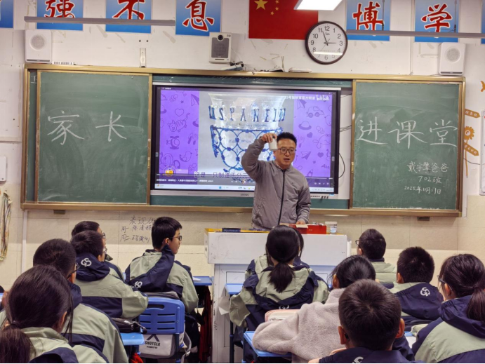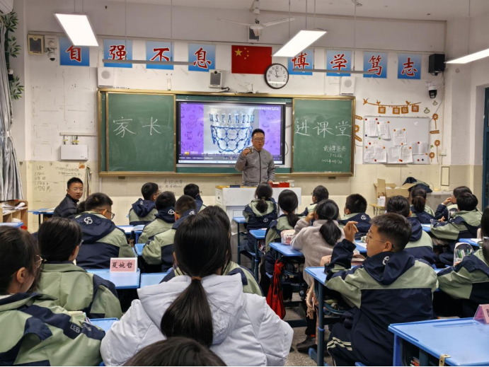为进一步加强家校合作,充分发挥家长的优势,丰富学校的教育资源,拓宽孩子们的视野。2025年11月17日七(2)班学生戴宇擎的家长——戴磊,为同学们带来了一场题为《玻璃的历史》的精彩讲座。戴磊以其独特的职业视角和生动讲述,引领同学们进行了一场奇妙探索,现场反响热烈。