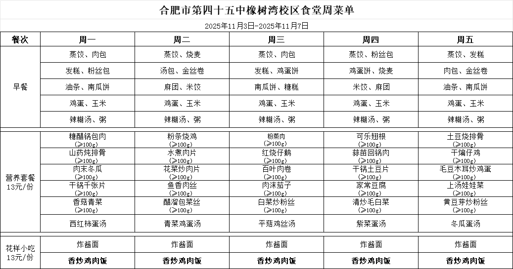 食堂食谱(20251103-20251107)