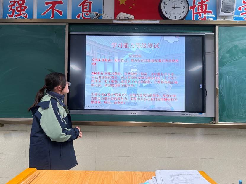 分析,总结了校园中常见的假努力表现:比如盲目刷题不总结错题、打卡式学习只为完成任务、假装专注实则走神、跟风报补习班却不消化吸收等。“假努力的本质是用表面的忙碌掩盖内心的迷茫,既浪费了时间和精力,还会让自己陷入‘努力却无果’的自我怀疑中。” 谌老师的话引发了同学们的深刻共鸣。