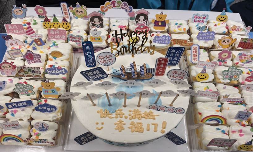 这是十七班的第三次集体生日会了。虽然没有复杂的环节,但看着父母的祝福视频、切蛋糕,但每个人的脸上都洋溢着笑容。小寿星们都说,爸妈的视频让他们特别感动,能和全班同学一起分享生日的快乐,比自己单独过生日热闹多了。这让我们也真切感受到了“幸福十七班”的温暖——大家就像一家人一样,互相陪伴、分享喜悦,这样的时光珍贵难得。