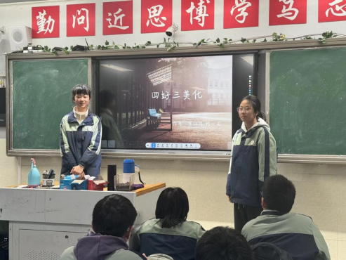 整场班会内容丰富、条理清晰,讲解深入浅出、生动有趣。同学们认真聆听,积极互动,现场气氛热烈。此次主题班会的成功举办,不仅加深了同学们对“四好三美化”内涵的理解,更为大家指明了今后努力的方向,有效提升了班级的凝聚力和向心力。相信在全体同学的共同努力下,我班必将在“四好三美化”的建设道路上迈出更加坚实的步伐,展现新时代青年的良好风貌。