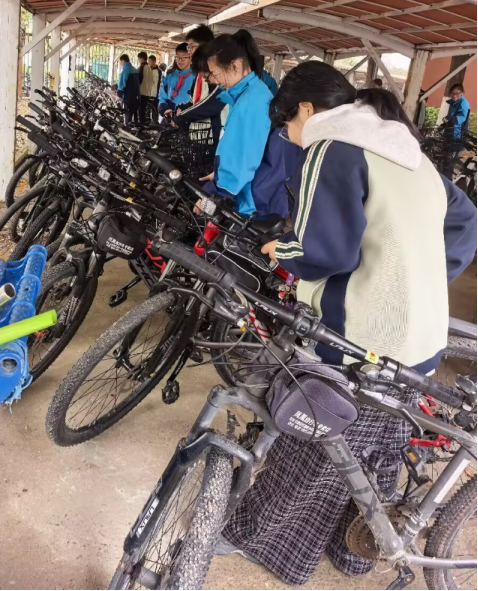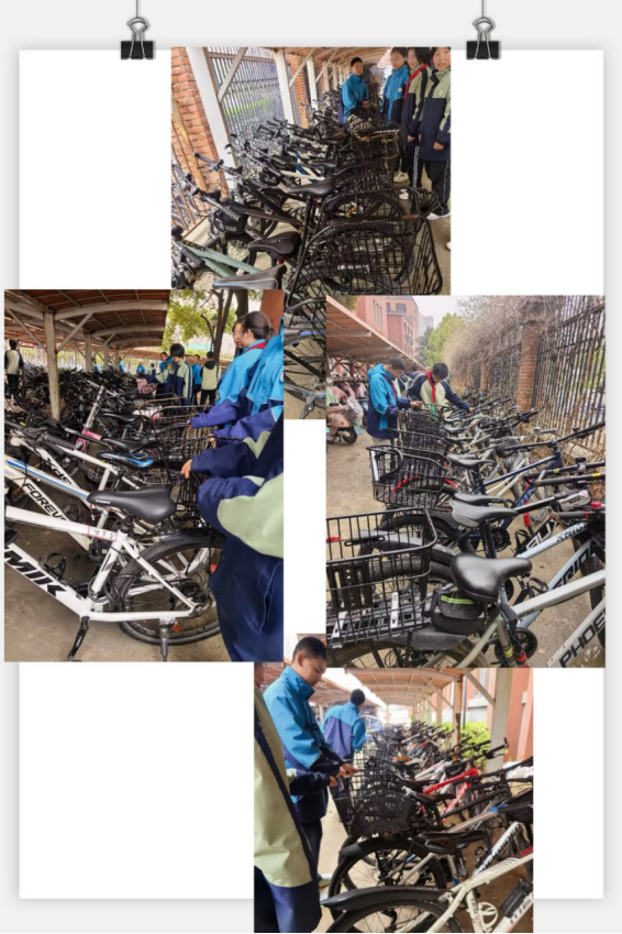 同学们相互协作、彼此配合,有的弯腰扶车,有的调整间距,有的清理车辆周边杂物,忙碌的身影穿梭在车库的各个角落,成为春日校园里一道亮丽的风景线。