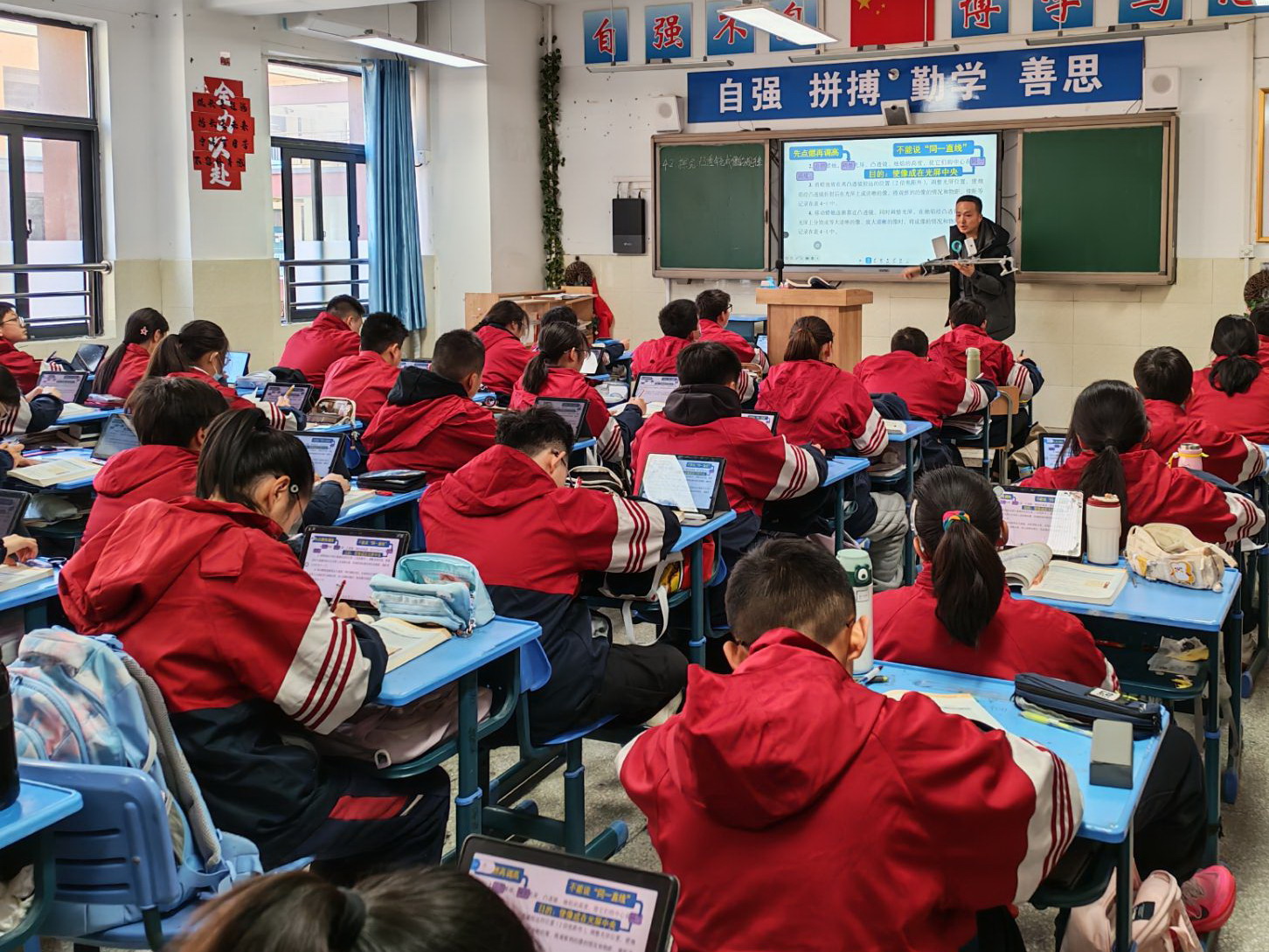 调研伊始,在胡茂侠书记、何钧校长的带领下,调研组成员实地参观了校园,直观感受校区的办学环境与数字化建设氛围。随后,刘天方老师展示了一节精彩的物理智慧课堂,将数字化教学工具与学科教学深度融合,呈现了数据赋能课堂的生动实践。