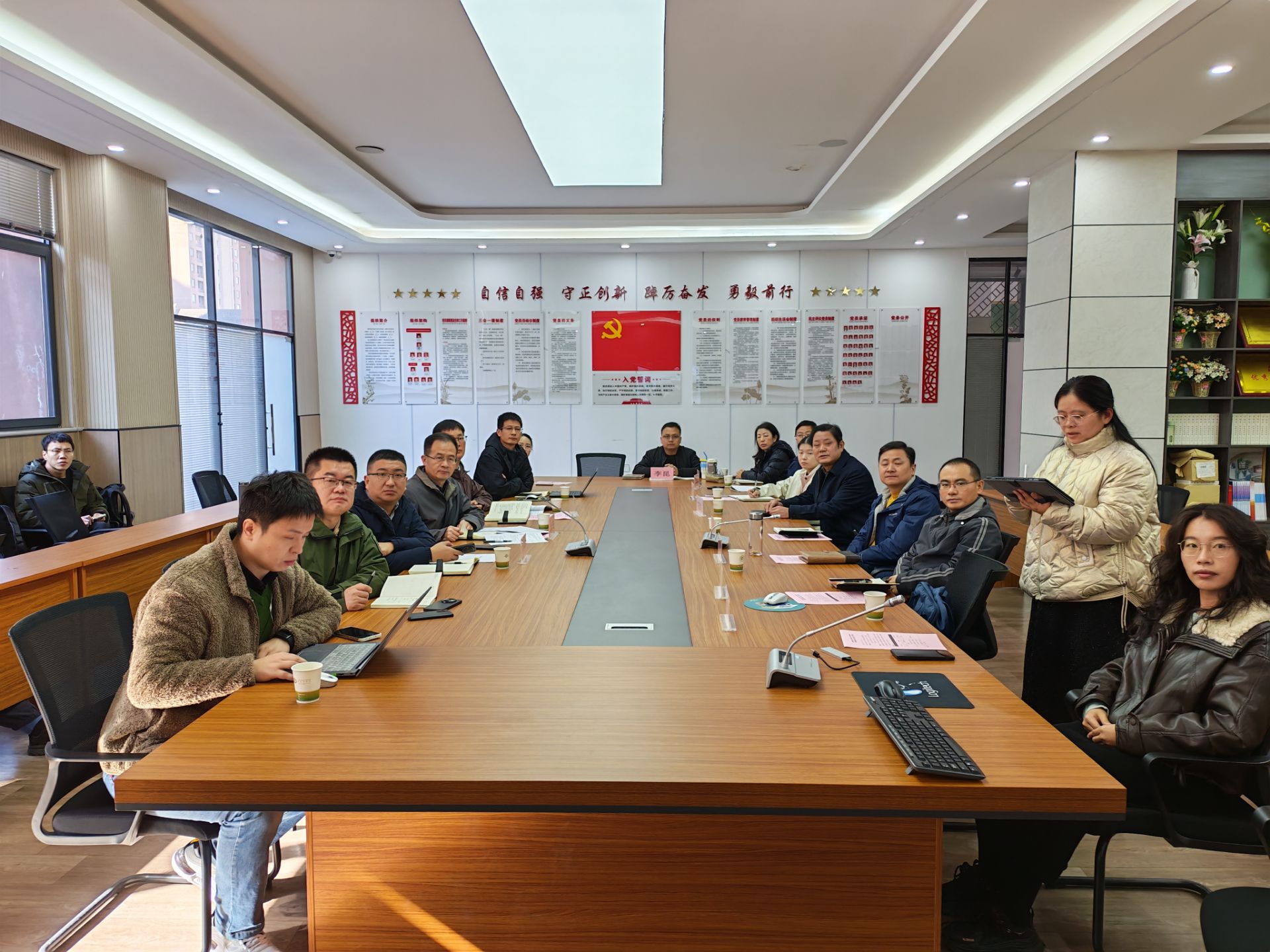 在专项汇报环节,学校相关负责人及教师代表围绕试点工作核心内容逐一发言。宋蓓蓓老师从试点推进整体情况、数据标准落地实践、教管数据赋能成效及实践难点问题梳理四个维度,全面汇报了学校作为安徽教育数据综合应用平台试点单位的工作进展。陈雅璐老师以“数据驱动下的历史教学评价及改进”为主题分享经验,提出“数据本身没有价值,但教师的智慧能让它产生光芒;数据本身不会说话,但教育的温度能让它发声”的鲜明观点。吴捷主任详细介绍了央馆智能研修平台的应用情况。李昆主任则分享了利用即将报废的平板赋能班级日常行为规则检查、以数字驱动班级管理的创新做法。汇报结束后,省厅工作人员还开展了安徽教育数据综合应用平台使用培训。