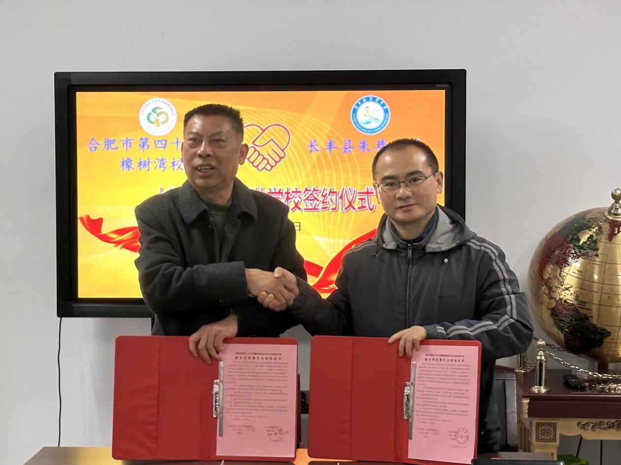 冬日晴光好,风轻裹校园。2025年12月2日,合肥市第四十五中学橡树湾校区的电子屏上,“城乡携手共进学校签约仪式”的红字灿然醒目——我校与长丰县朱巷中学的校际结对签约活动,于此温情启幕。两校代表齐聚一堂,共同翻开城乡教育协同发展的崭新扉页。