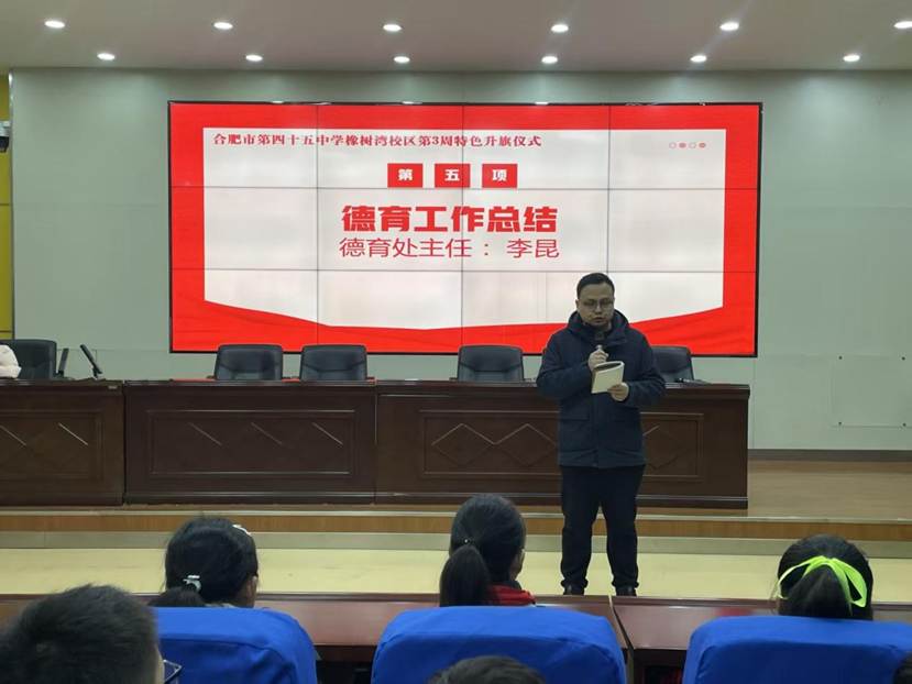 为进一步美化校园环境和深化生态文明教育,营造绿意盎然、文明和谐的校园环境,3月16日上午,合肥市第四十五中学橡树湾校区举行以“爱绿护绿,美丽校园”为主题的特色升旗仪式。本次升旗仪式由七(2)班郑舜昕、七(8)班张艺可两位同学主持,由七年级(3)班全体师生承办。