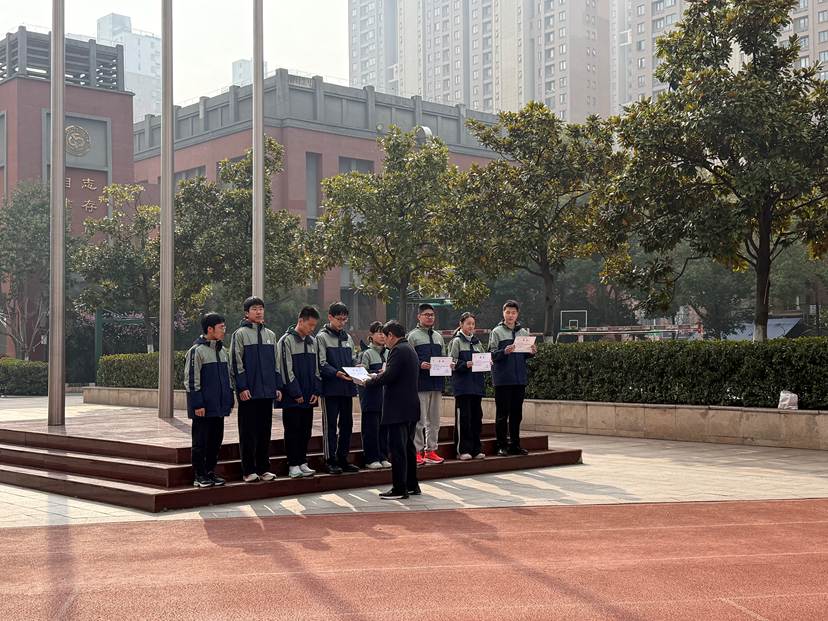紧接着是国旗下颁奖环节。校领导对在九年级英语学科特色活动中表现优异、成绩突出的同学进行集中表彰,鼓励大家再接再厉、勤学善思,在不断突破中提升学科素养与综合能力。