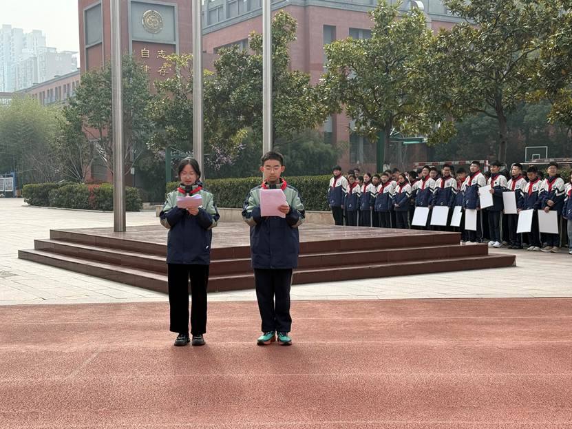 最后,在“四好三美化、校长表扬你”环节中,何钧校长对上周在美化校园、拾金不昧等方面表现优秀的同学予以表扬。他指出,“四好三美化”不仅是行为规范,更是文明素养的体现,而食品安全、健康生活、良好习惯正是其中的重要内容。他希望全体同学将规范记在心间、把行动落在日常,做到讲文明、讲卫生、讲安全、讲秩序,让健康习惯与文明风尚相伴成长,让“四好三美化”真正落地生根、照亮校园。