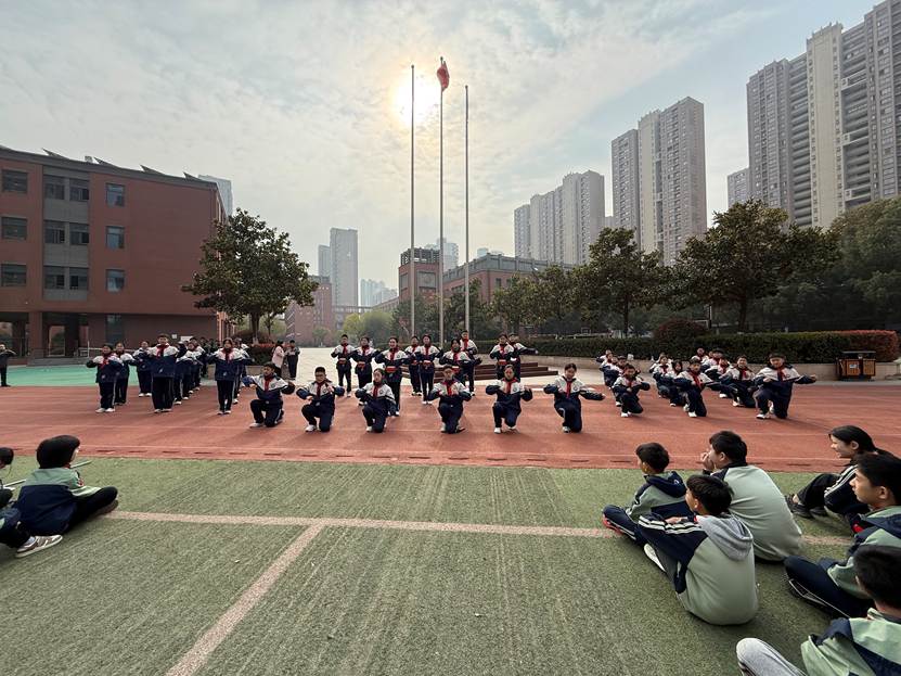 之后,国旗下展演正式开始。七(4)班同学带来精心编排的食品安全手势舞,同学们队列整齐、神采飞扬,以简洁明快、整齐有力的动作,搭配通俗易懂、朗朗上口的健康口号,将食品安全常识融入生动活泼的表演之中。节目围绕饭前洗手、饮食卫生、远离垃圾食品、拒绝不健康零食、科学膳食、按需取餐等关键内容展开,用青春活力的形式传递健康理念,让食品安全知识在轻松愉悦的氛围中入脑入心,赢得台下阵阵热烈掌声。