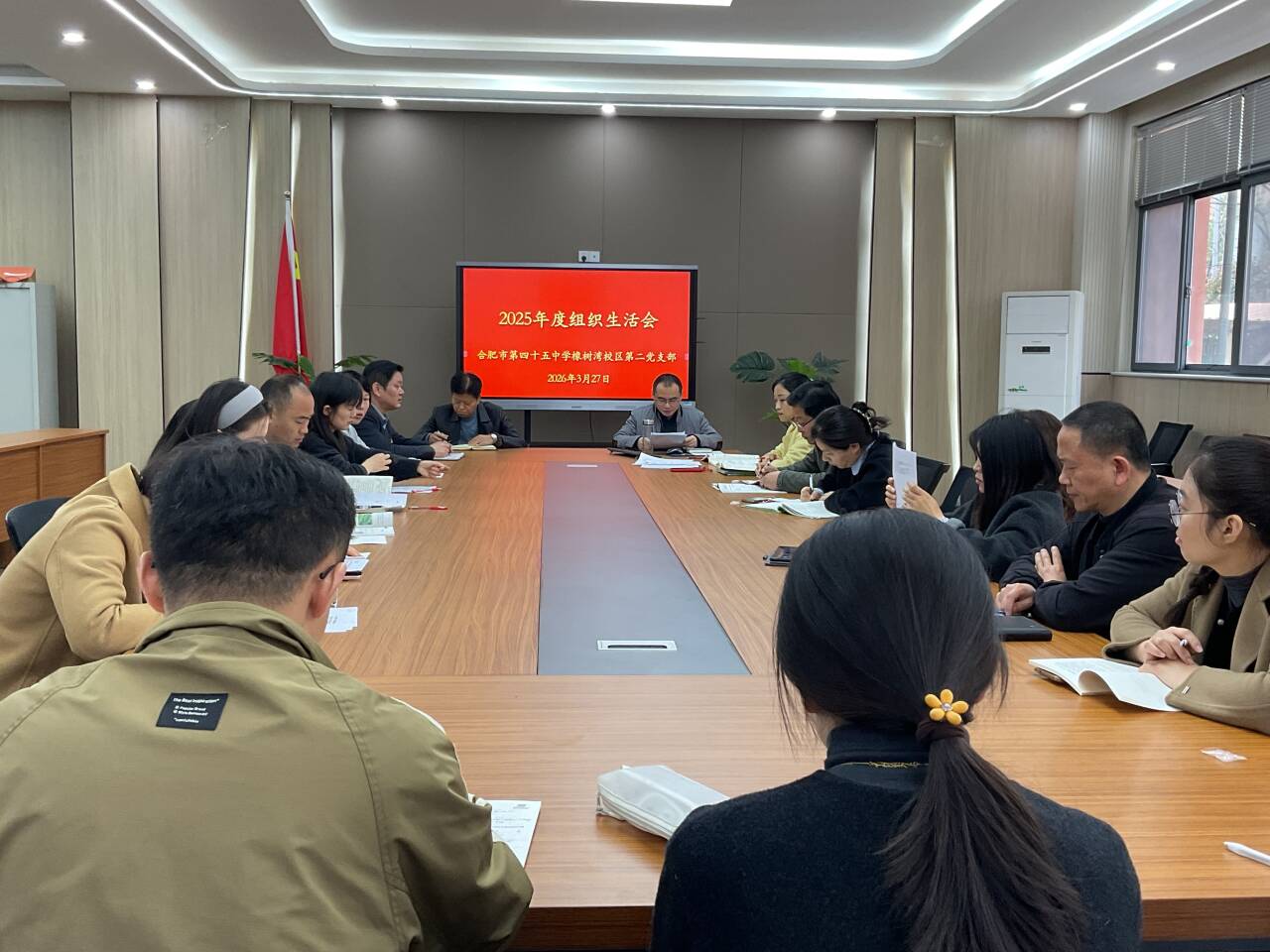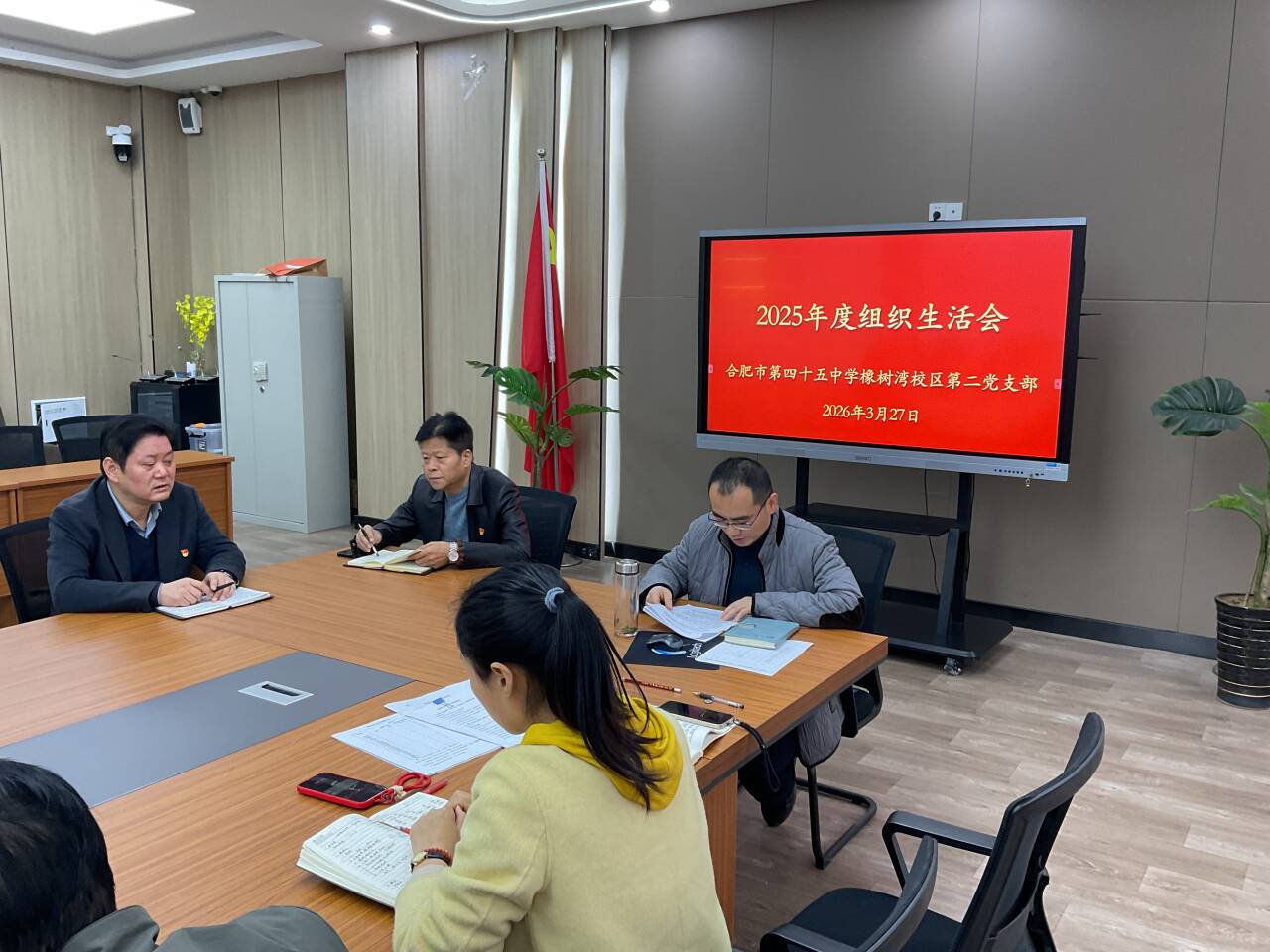 为进一步加强学校党组织建设,严肃党内政治生活,强化党员教师的党性修养与责任担当,切实提升党组织的凝聚力、战斗力和向心力,2026年3月27日上午,合肥市第四十五中学橡树湾校区第二党支部在一楼接待室召开专题组织生活会。合肥市第四十五中学橡树湾校区党总支书记胡茂侠、党总支副书记文亮,合肥市第四十五中学橡树湾校区第二党支部书记何钧校长及全体党员教室师参会,会议由第二党支部宣传委员曹正国主持。会议围绕既定主题,深入开展批评与自我批评,达到了统一思想、改进作风、增进团结的预期目的。